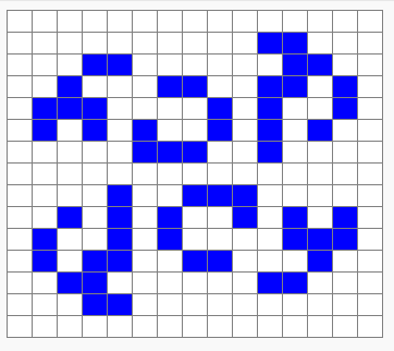 - Et un curseur (notre fourmi) initialement positionné en 4e ligne, 4e colonne.